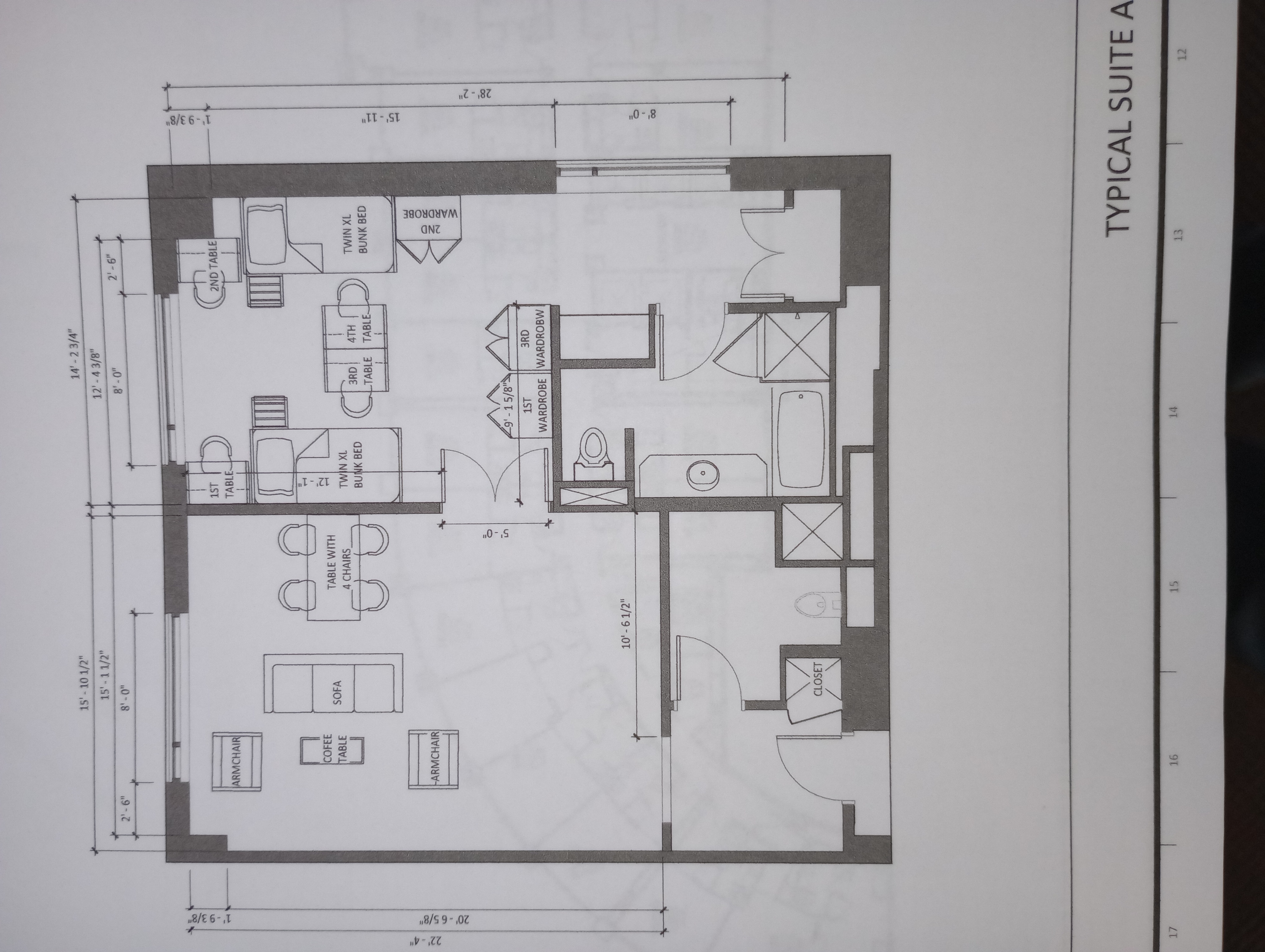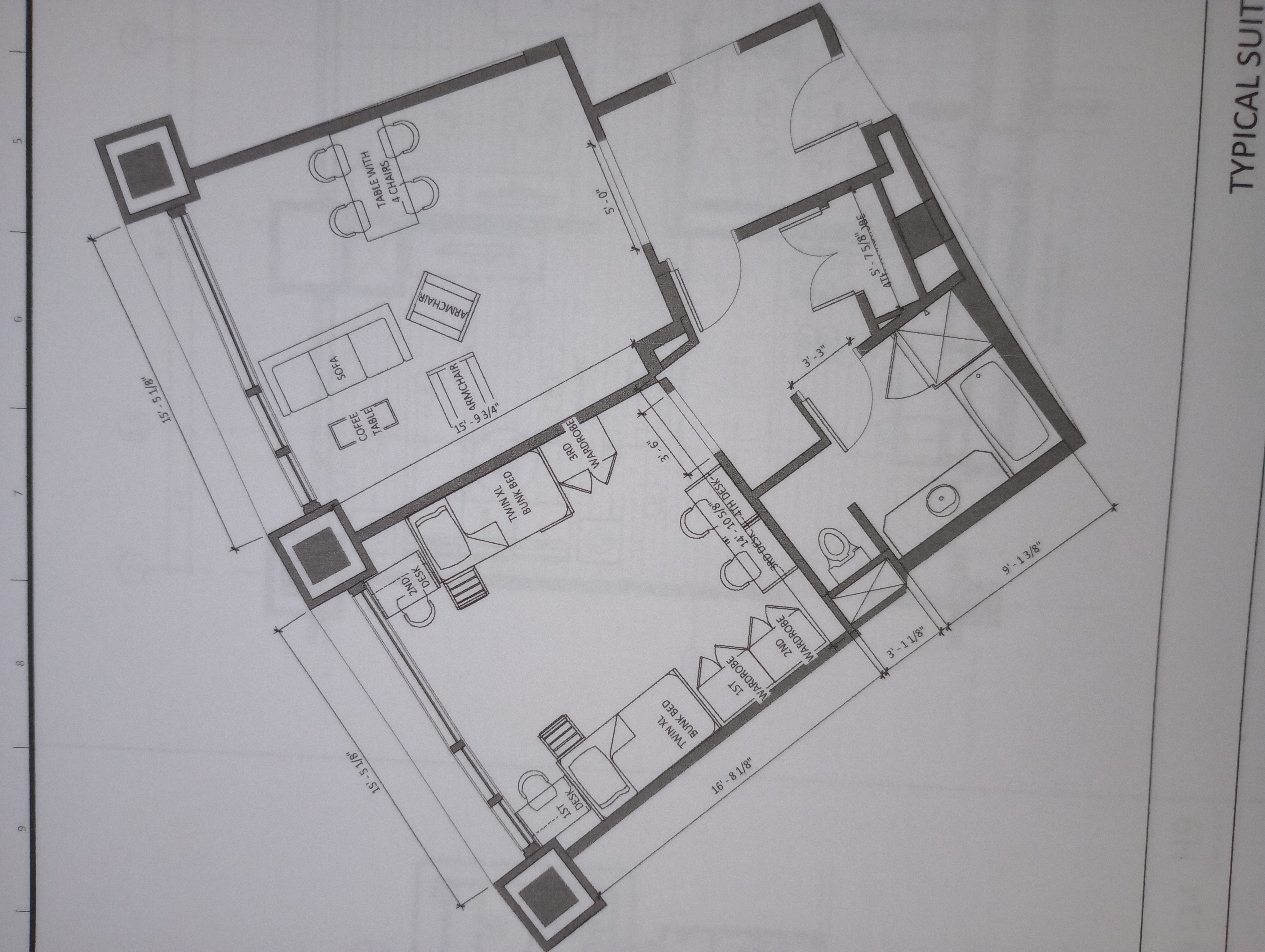 Double, triple and quad room types are available. The quads include a separate living room area in each unit. All units have a private full bathroom.