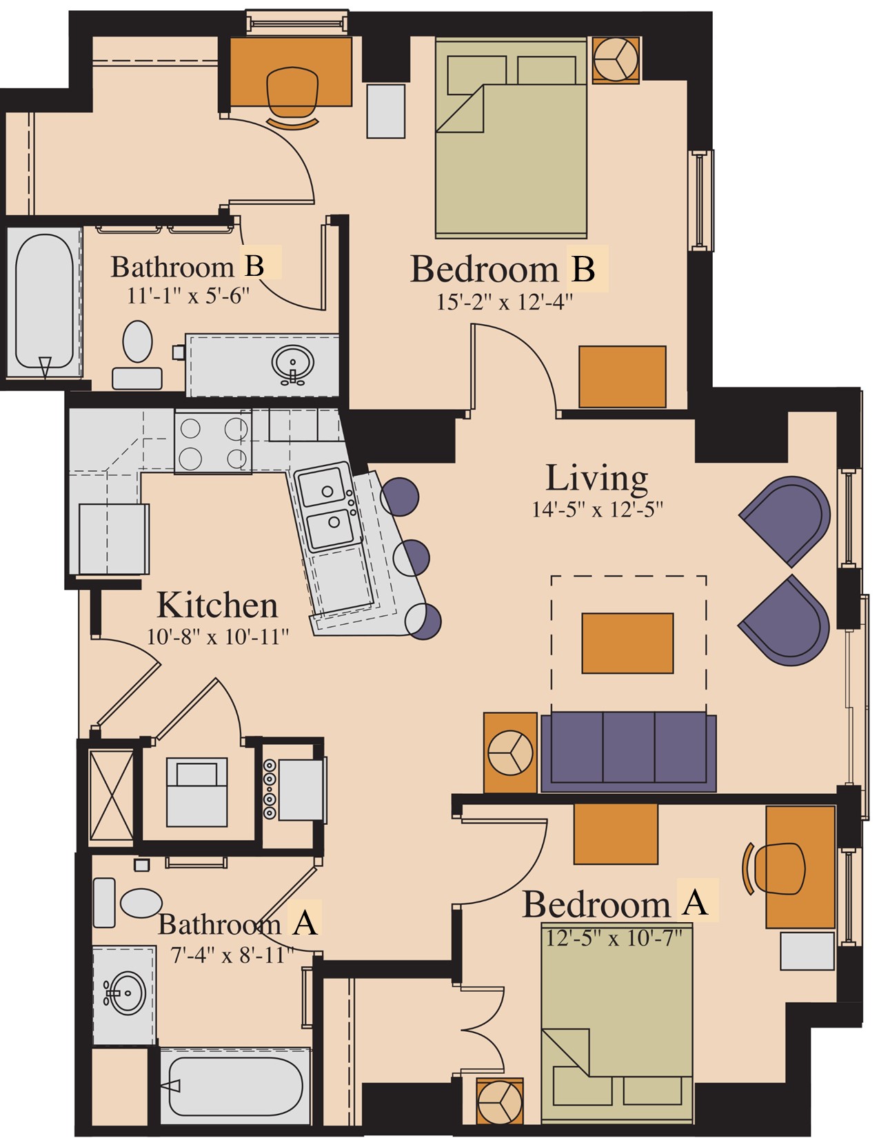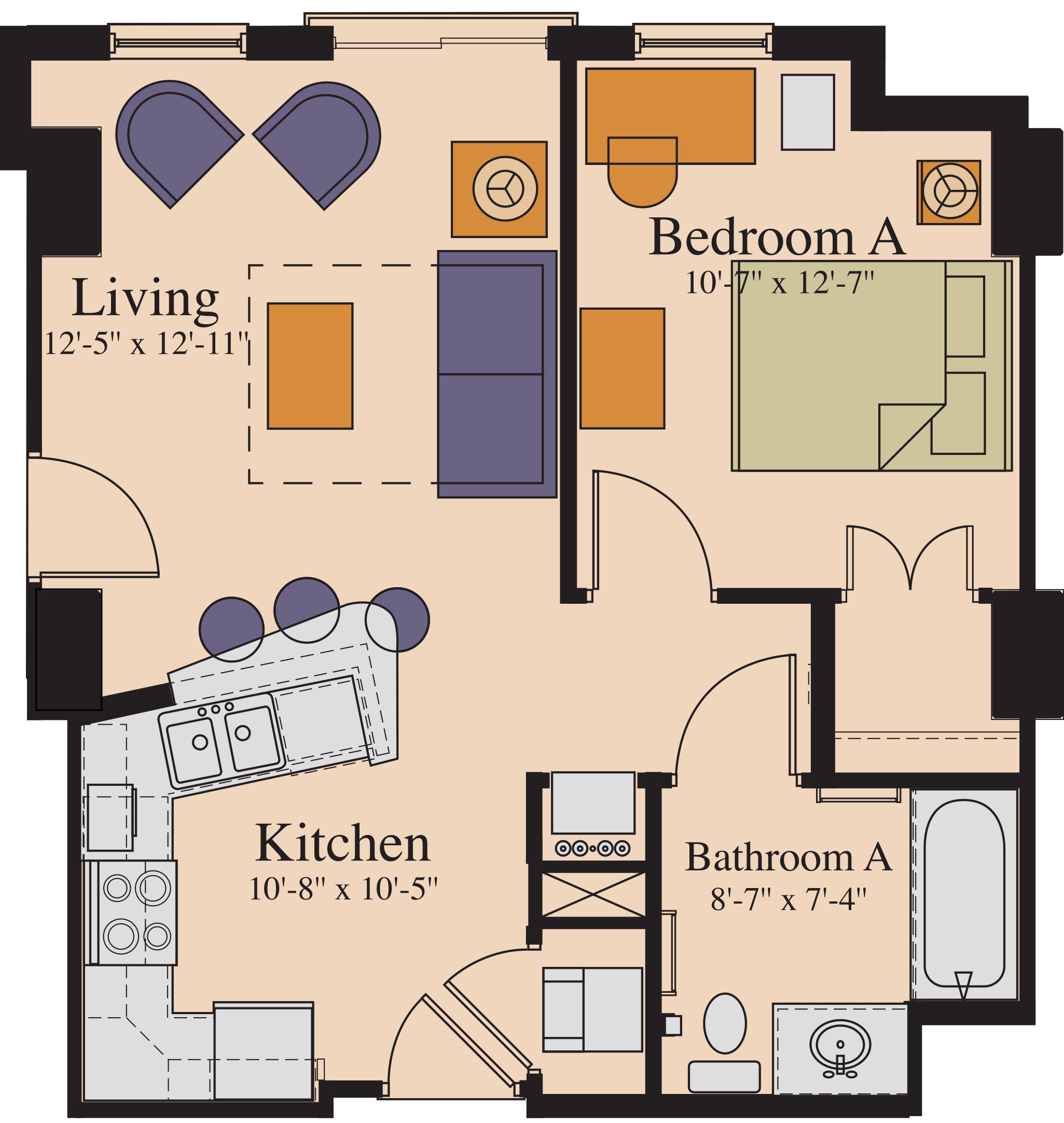 bedroom. CVA also has two-bedroom apartments that four students share, two students