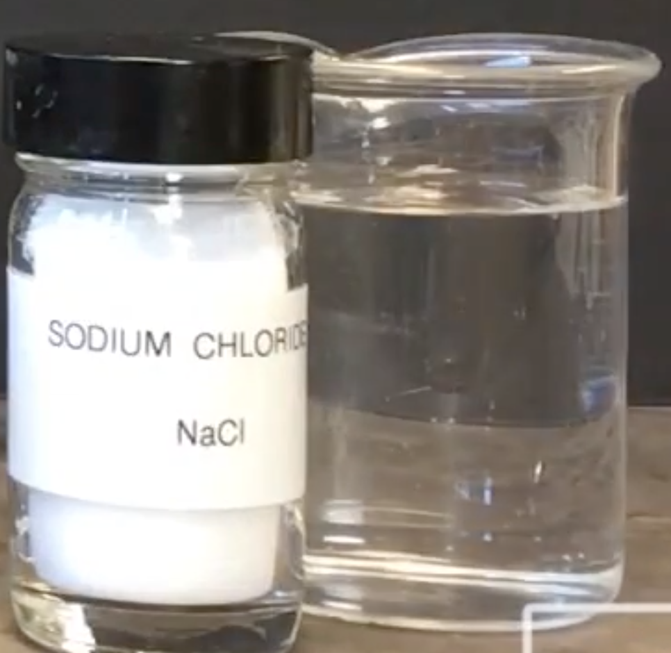 INSTRUCTIONS: Examine the following evidence from the Precipitation Reaction Experiment video. Focus on the solutions in each beaker. What do the solutions look like, before they have been mixed, at the molecular level? In other words, what would you see if you could zoom in to see the atoms or ions?